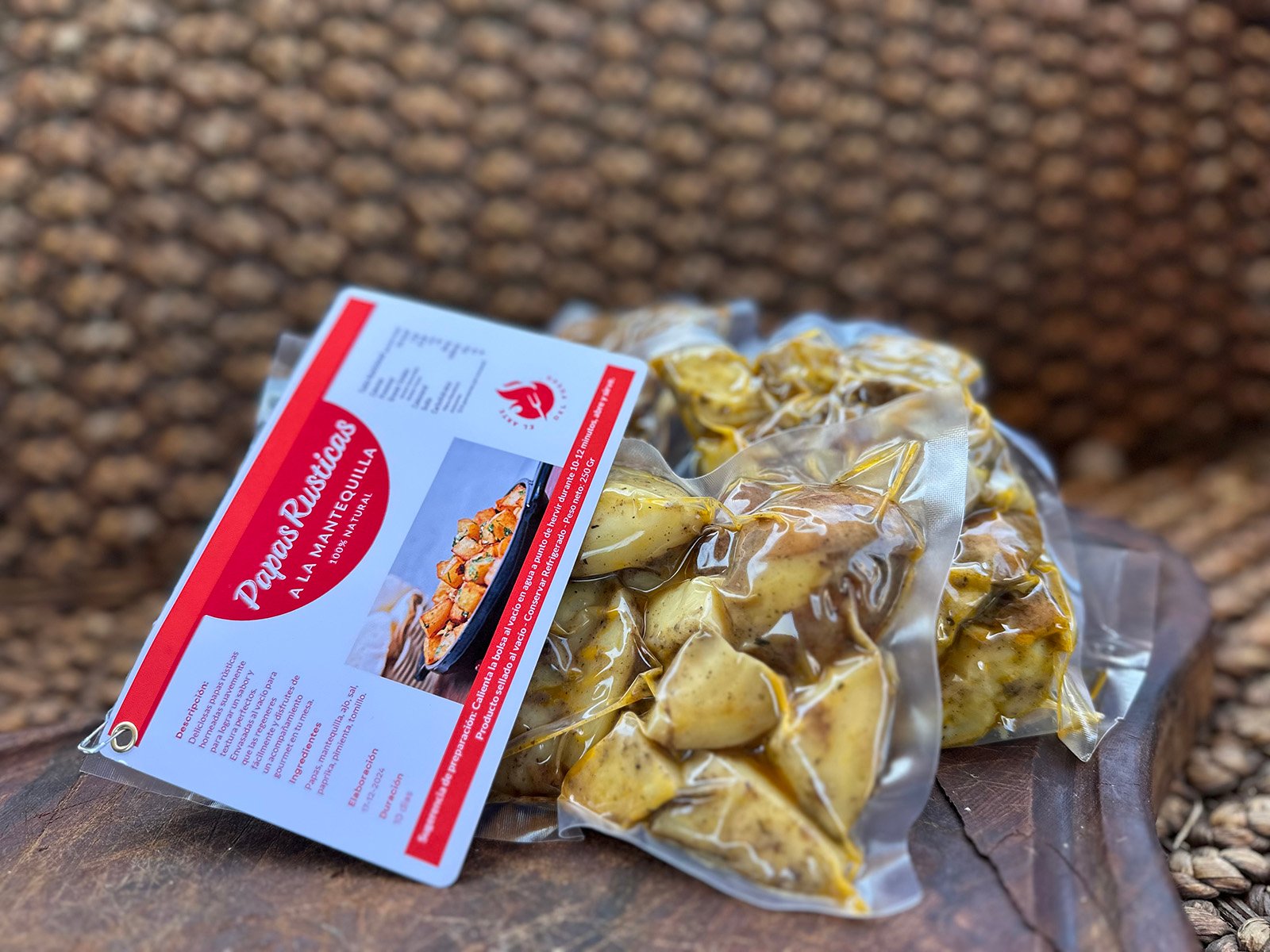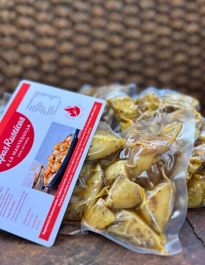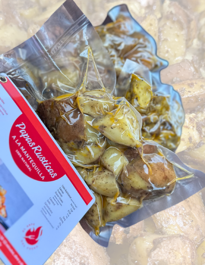 Nuestras papas rústicas a la mantequilla son el acompañamiento perfecto para cualquier plato. Preparadas con un toque de mantequilla, ajo y especias seleccionadas, estas papas destacan por su textura dorada y su sabor irresistible. Cocidas al horno y selladas al vacío, están listas para calentar y disfrutar en minutos. Solo necesitas sumergir el envase en agua caliente durante 10 a 12 minutos o calentarlas directamente en horno o sartén. Ideales para compartir con familia y amigos, llevan un toque de sabor casero a tu mesa.
